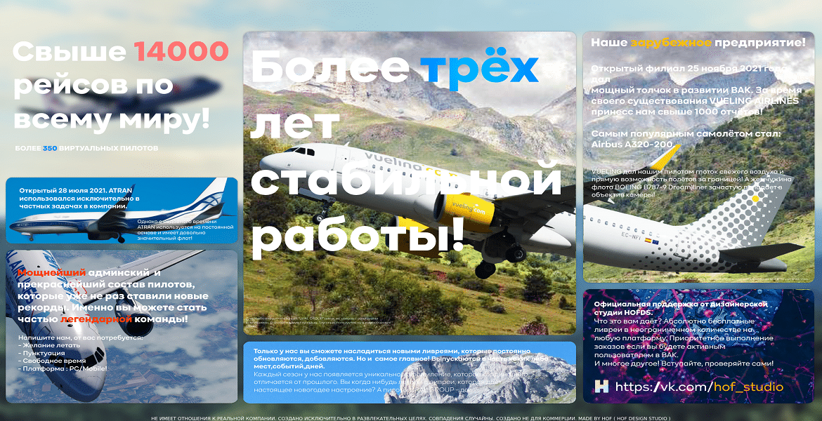 About the team: At the moment, the number of pilots of our airline is close to 30, but it is growing every day and more and more pilots are joining our virtual airline. By joining our VA, you will be able to chat about topics that interest you, as well as ask a question of interest, which our pilots will be happy to answer. Also, for convenient communication, we have created a discord server where you can freely communicate and try yourself as a dispatcher.
